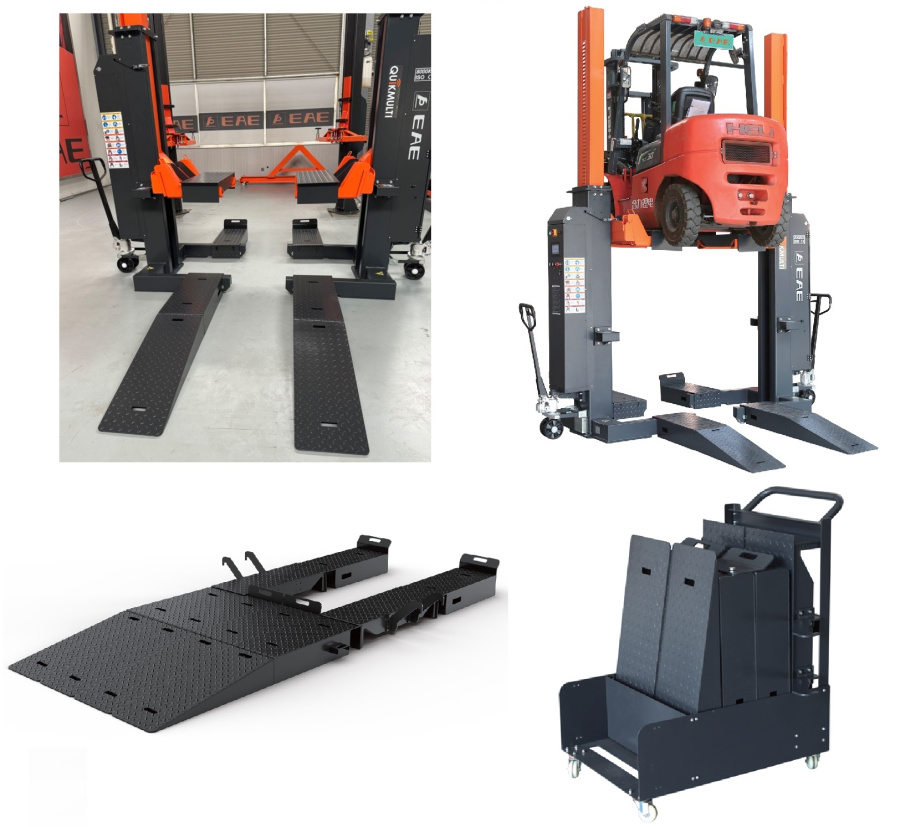 Приобрести Комплект кронштейнов подхвата с заездными трапами для работы с погрузчиками. от компании Everlift (EAE), КНР из раздела Аксессуары по цене 273 409 рублей.