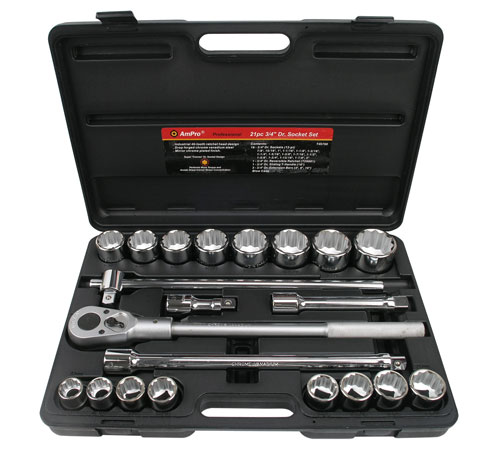 Приобрести T45751 Набор 6-гранных головок и аксессуаров 3/4", 21 предмет от компании AmPro (Тайвань) из раздела Наборы инструмента в пластиковых кейсах по цене 21 516 рублей.