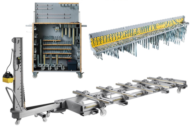 Отличительной особенностью стапеля является оснащение системой с универсальными захватами: ее модульная конструкция позволяет работать с различным типам транспортных средств и видами повреждений. Оптимизируя процесс ремонта, данная система помогает сократить время простоя автомобиля, повысить эффективность работы технического персонала и обеспечить высококачественный ремонт.