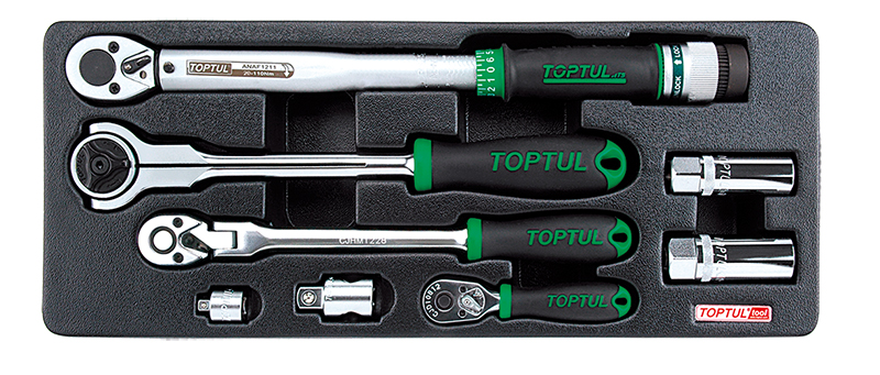 Набор трещоток 1/4", 3/8", 1/2", динамометрический ключ 3/8" 20-110 Нм, переходники и свечные головки, 8 предметов в ложементе (B) TOPTUL купить в Симферополе и других городах России