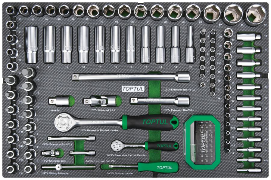 Набор головок и аксессуаров 1/4" и 1/2" 6-гр.,133 пр. в мягком ложементе TOPTUL GEDD348 купить в Симферополе и других городах России