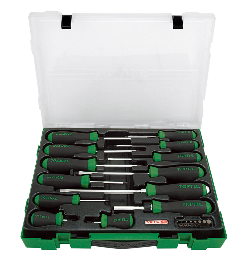 Приобрести Набор отверток и бит (PH, PZ, SL, Hex, SQ), 20 предметов в кейсе TOPTUL от компании Toptul (Тайвань) из раздела Наборы отверток по цене 6 290 рублей.