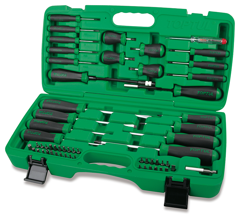 Приобрести Набор отверток и бит профессиональный, 58 предметов в кейсе TOPTUL от компании Toptul (Тайвань) из раздела Наборы отверток по цене 10 304 рублей.