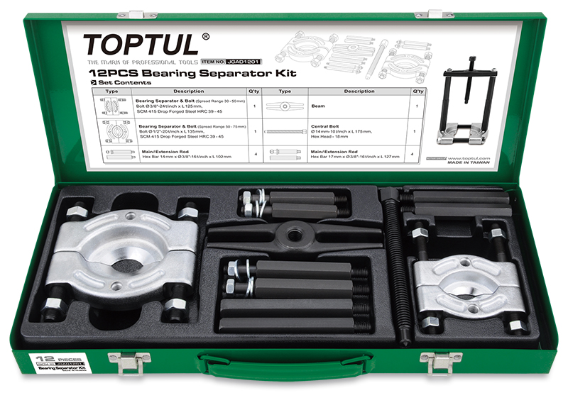 Приобрести Набор съемников сепараторного типа 30-50, 50-75 мм, 12 предметов в метал. кейсе TOPTUL от компании Toptul (Тайвань) из раздела Съемники подшипников и сайлентблоков по цене 12 563 рублей.